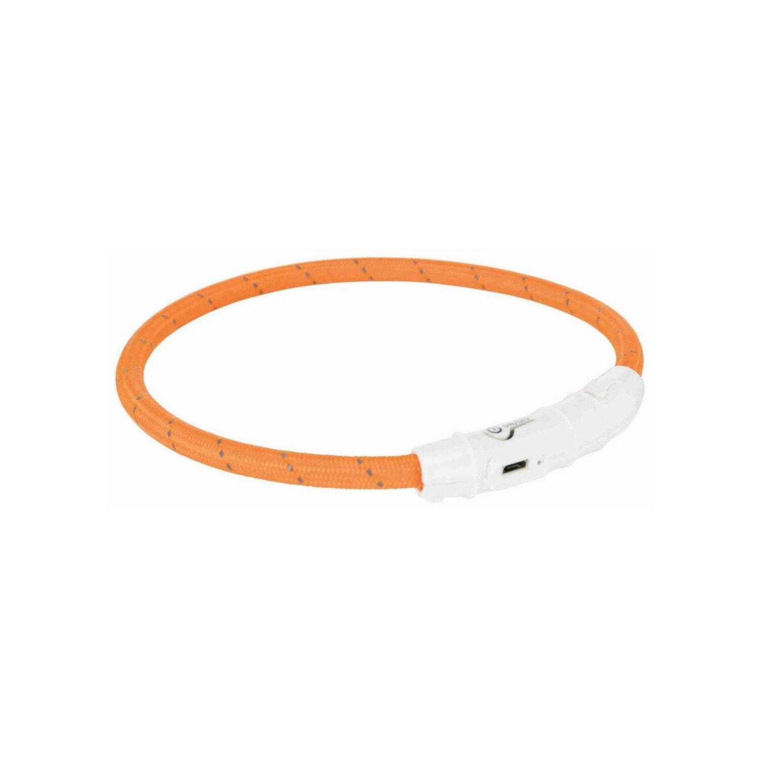 L’anneau lumineux de Trixie est réalisé dans un matériau souple et résistant aux éclaboussures. Il dispose de piles rechargeables via un câble USB et dont l’autonomie est d’environ 8 heures en éclairage clignotant et 5 heures en continu. Le collier s’ajuste par simple coupe. Il est fourni avec un câble USB et un tournevis.