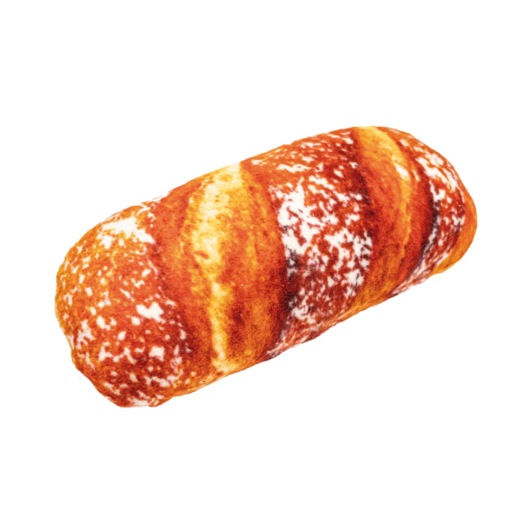 Jouet chat baguette de pain à l’herbe à chat avec un grelot discret à l’intérieur.