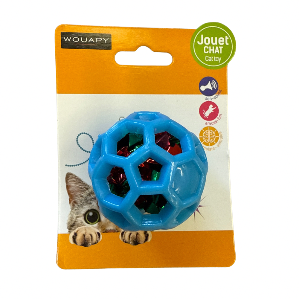 Balle en TPR creuse d’occupation pour chat et chaton avec papier bruissant et brillant.