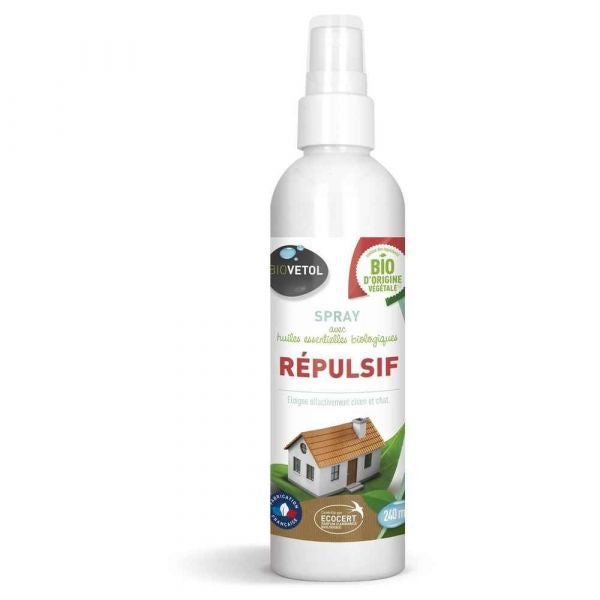 Protégez vos lieux et objets des griffes et des dents de vos chiens et chats avec ce répulsif aux huiles essentiels bio proposé par la marque française Biovetol. Il diffusera de plus une odeur très agréable dans votre intérieur.