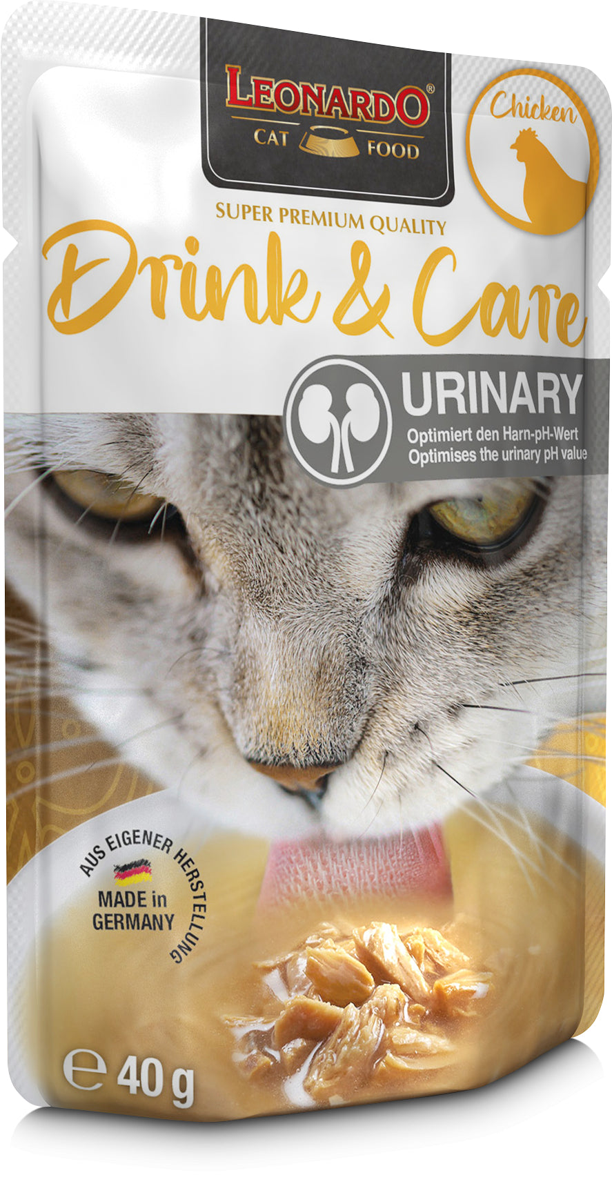 Pour les petits buveurs : Peu importe combien ils jouent – certains chats n’ont tout simplement pas soif. Une petite gorgée de motivation aide à rééquilibrer leur hydratation : Le goût savoureux de viande du LEONARDO Drink & Care Urinary Chicken stimule l’envie de boire, favorise l’absorption de liquide et soutient les voies urinaires en optimisant le pH urinaire – un petit coup de pouce pour le bien-être.