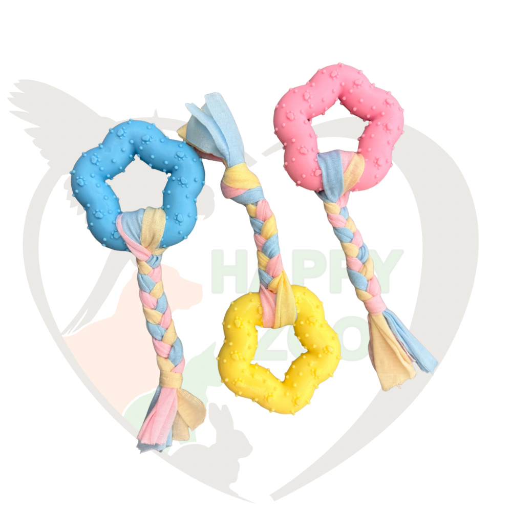 Jouet dentaire parfait pour les chiots ou chiens de petite taille.  Double matière en TPR et une tresse en coton.