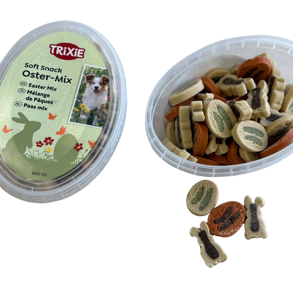 BoĂźte de friandises en forme dâĆuf de PĂąques. ComposĂ©e dâun mĂ©lange de friandises tendres en formes dâĆufs et de lapin.Â