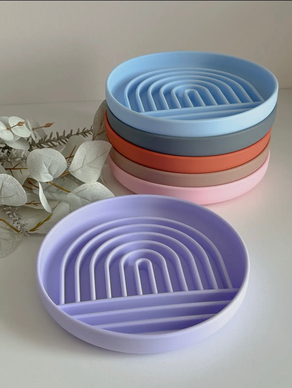 Grâce à ses fentes en forme d'arc en ciel tu peux laisser libre cours à ton imagination pour réaliser des tapis de léchage fun et coloré !