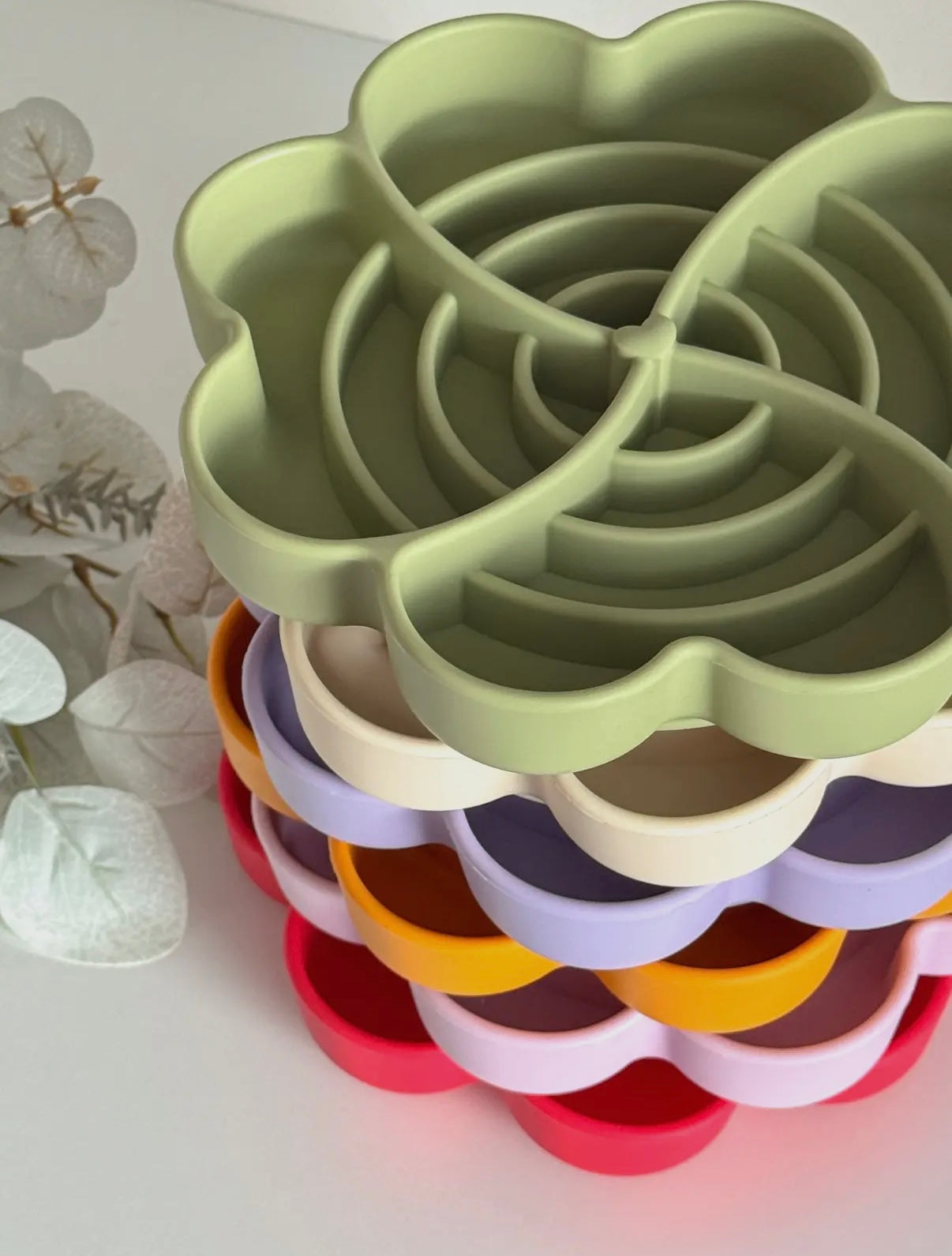 Ce superbe tapis de lèche en silicone se ventouse au sol. Ces différentes profondeurs permette de varier la difficulté avec un seul tapis.