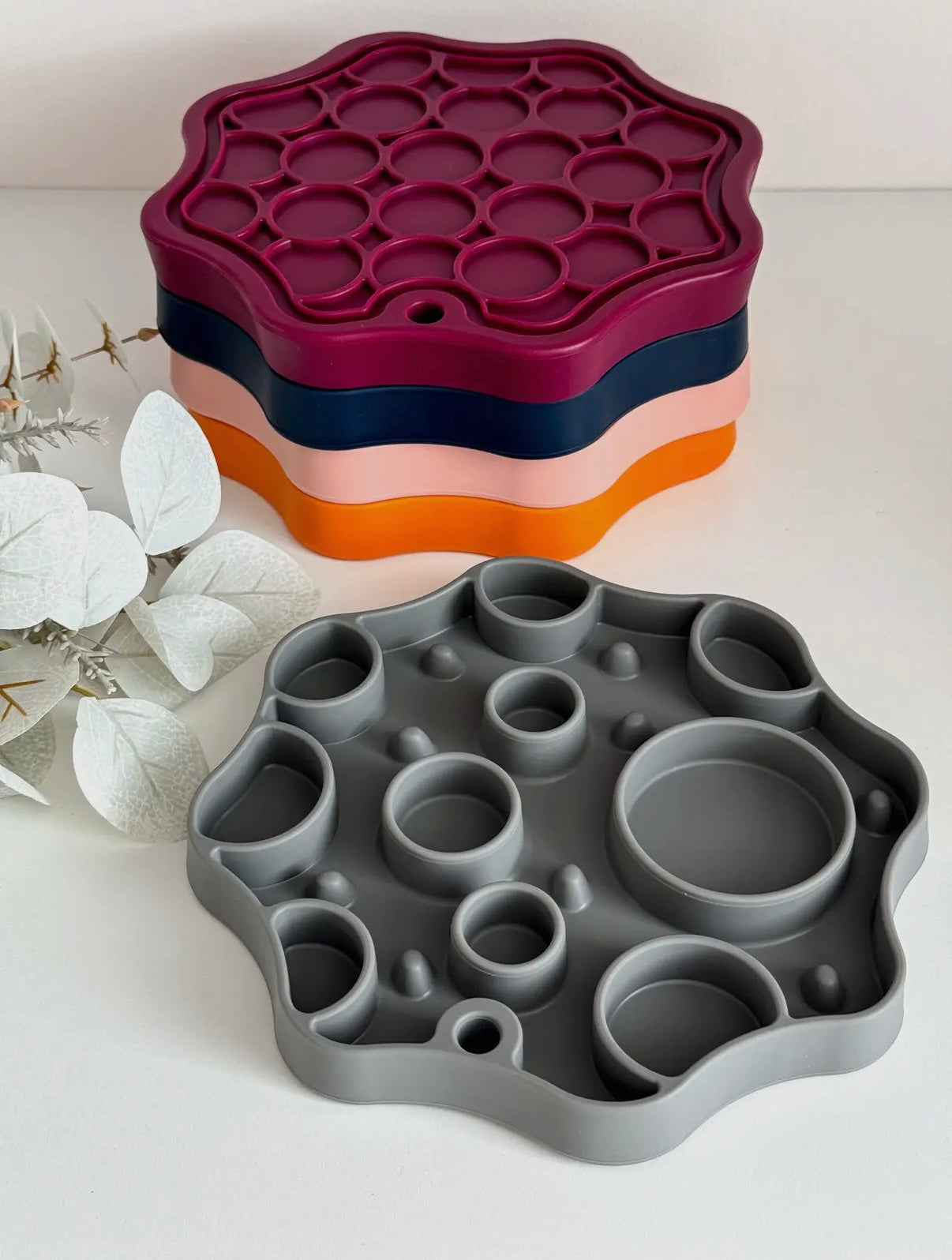 Tapis d’enrichissement 2 en 1, un côté enrichissement et de l’autre tapis de lèche.