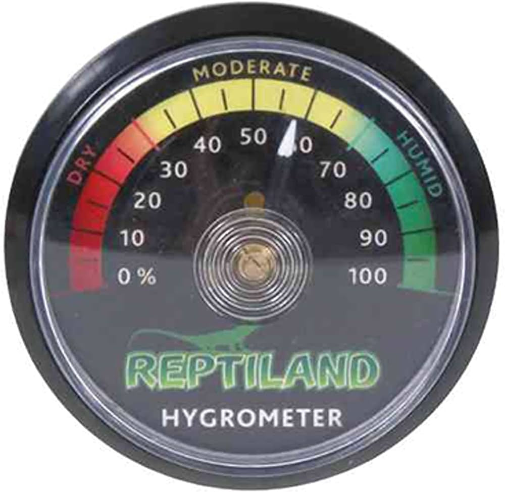 Hygromètre, assure un contrôle précis de l’humidité dans le terrarium. Étendue de mesure de l'humidité de l’air de 0 à 100%. Utilisation facile grâce au ruban adhésif au verso.