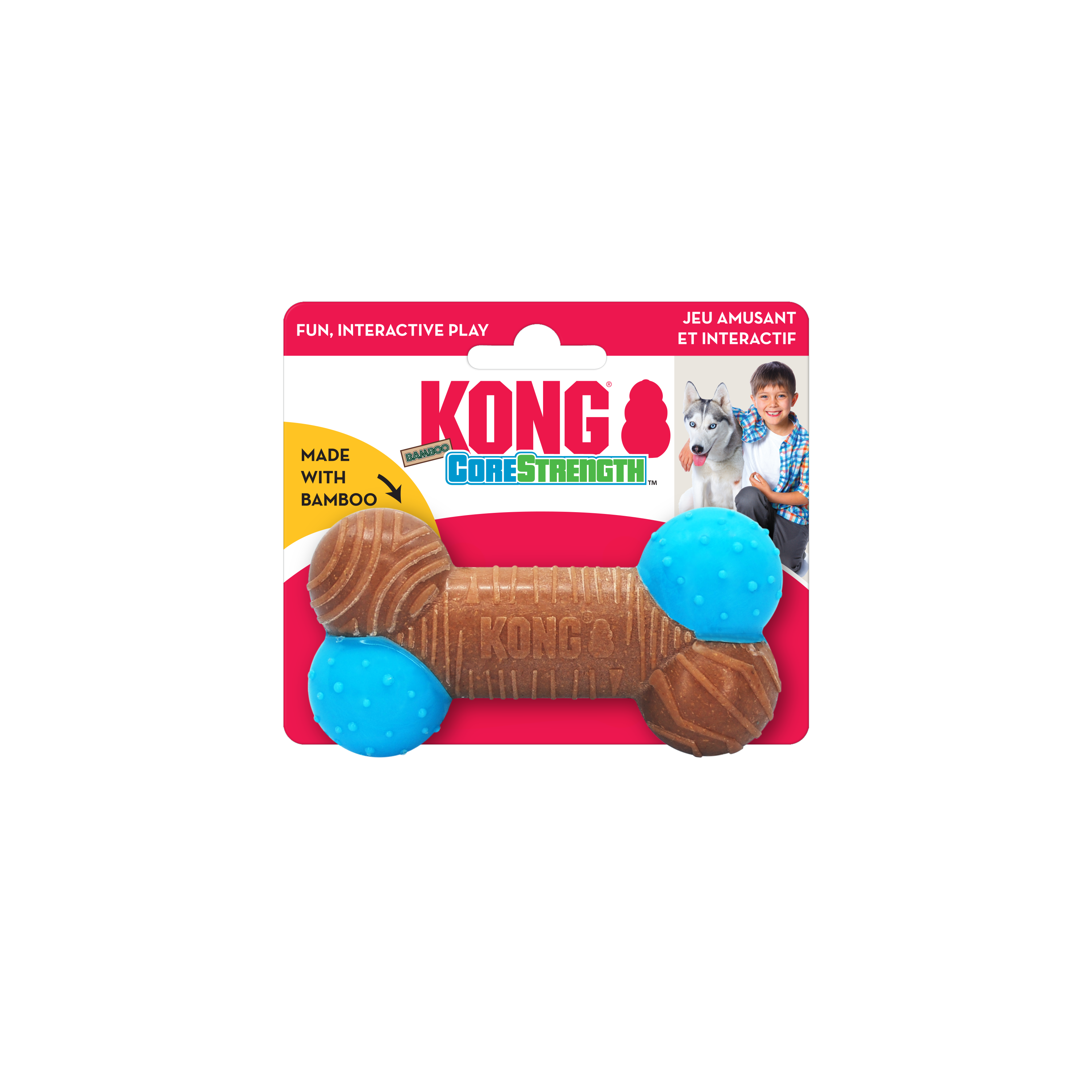 Fabriqué à partir de matériau solide et infusé de bambou, le jouet KONG CoreStrength Bamboo encourage la mastication tout en prolongeant le divertissement. Les textures et picots surélevés récompensent le comportement approprié tout en ayant l'avantage de nettoyer les dents. Jouet idéal pour les chiens qui veulent mâcher toujours davantage, sa conception unique répond aux désirs de ces derniers tout en ayant fière allure dans la maison.