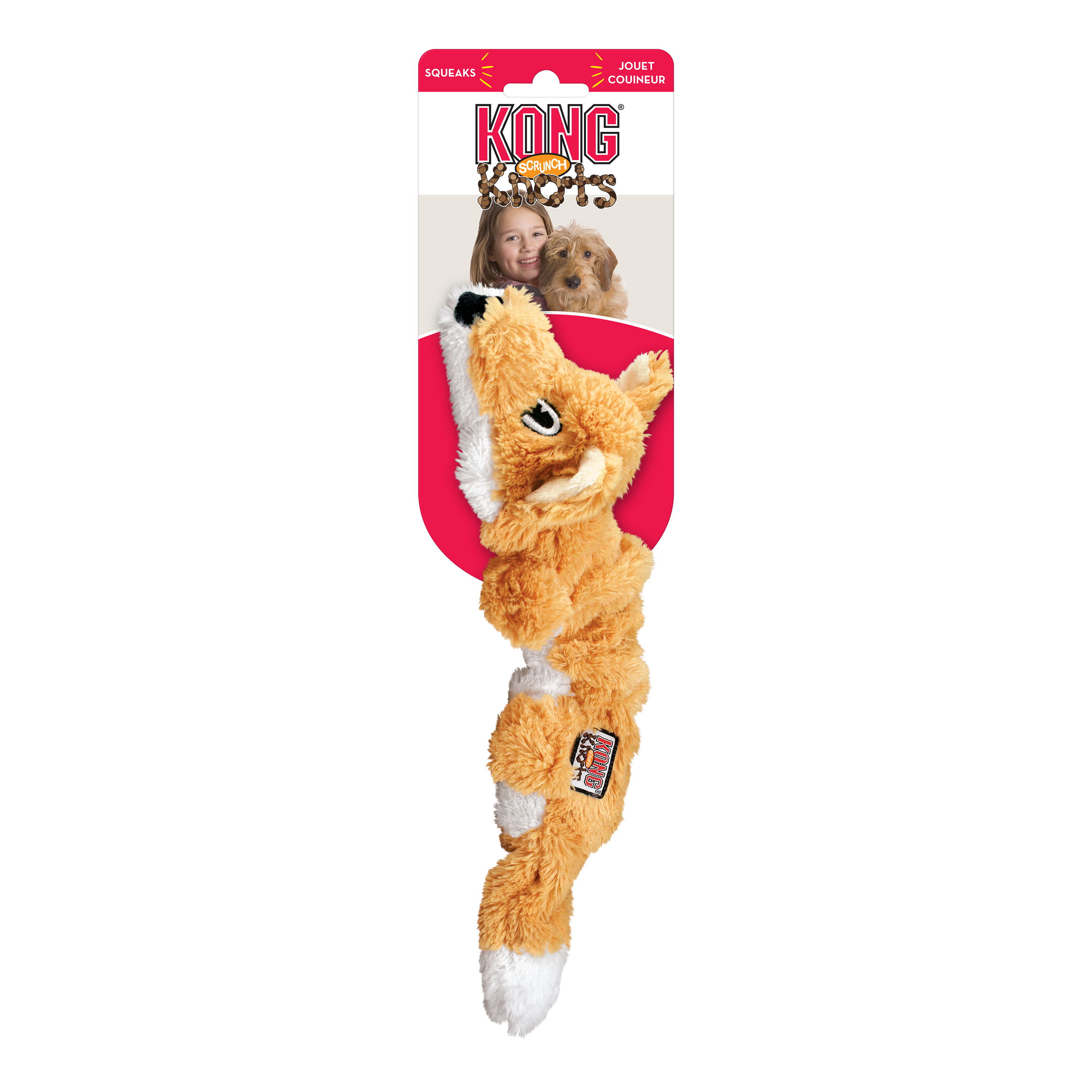 Les KONG Scrunch Knots sont des jouets réalistes qui éveillent sans cesse la curiosité des chiens. Le matériau en peluche se froisse autour de la corde nouée à l'intérieur, tandis que les côtés extensibles impriment un mouvement naturel qui les incite au jeu. Les nœuds à l'intérieur satisfont à leurs instincts naturels et comme ces jouets ne contiennent pas de rembourrage, ils font moins de salissures. Couine pour encore plus de plaisir !