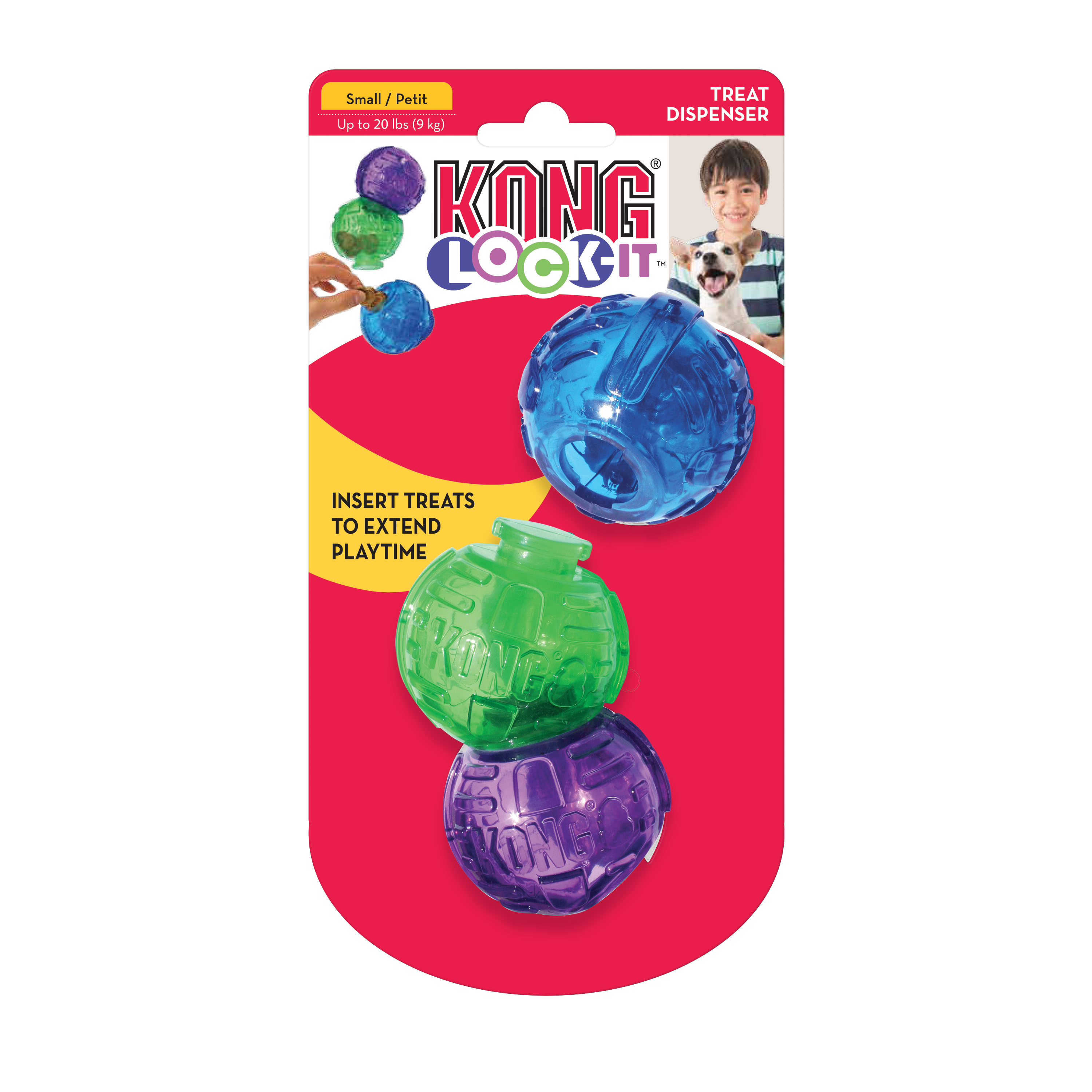 KONG Lock-it est un jouet d'alimentation canin qui permet à votre animal domestique de s'amuser tout en mangeant. Conçu pour offrir de la variété, ce jouet offre de multiples défis aux chiens tout en les récompensant avec des friandises ou des croquettes. Remplissez les balles de friandises pour chien ou de croquettes et refermez-les d'un simple geste. Vous pouvez également connecter plusieurs balles entre elles pour plus de plaisir. Les petites balles ont une contenance de 60 ml, les moyennes de 80 ml et les grandes de 120 ml, ce qui fait de ce jouet une alternative au bol de nourriture pour stimuler l'engagement mental et la gestion du poids.