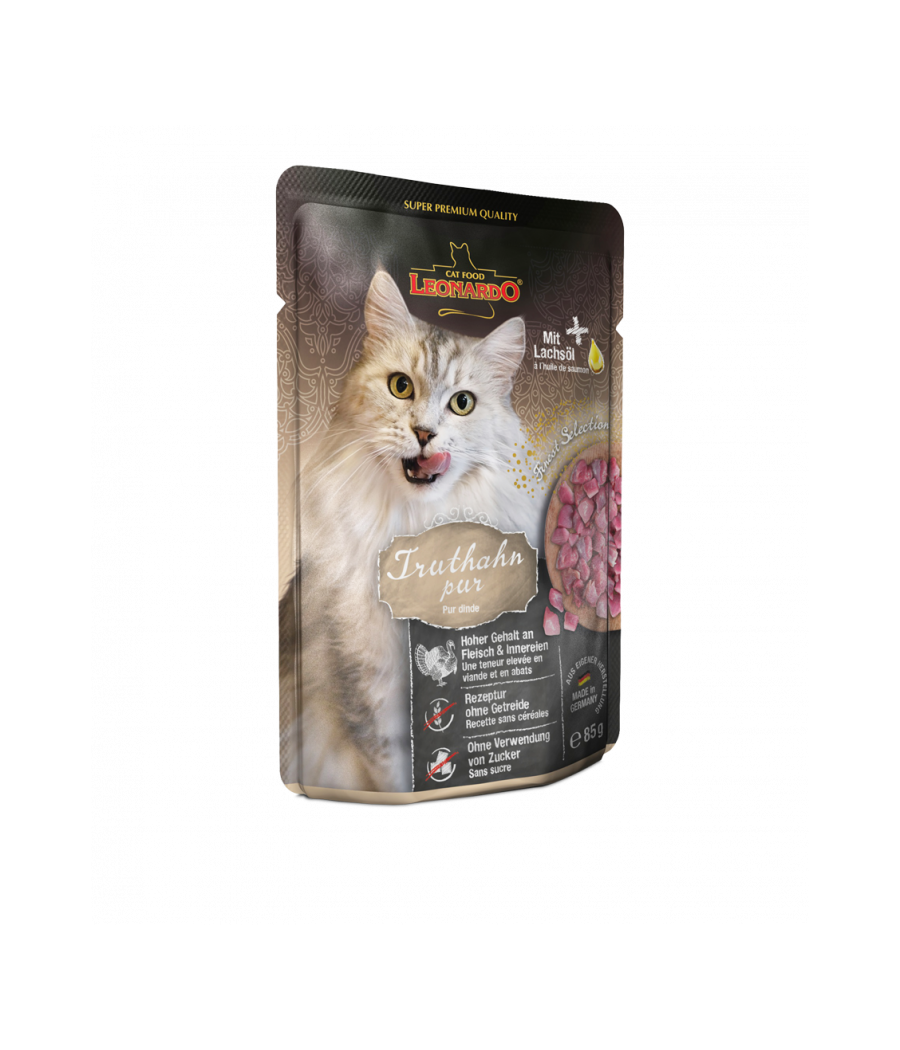 Viande de dinde, foie, cœur, gésier (70 %) ; Bouillon de viande (28,8 %) ; Coquilles d'œufs séchées (0,5 %); Minéraux (0,5 %); Huile de saumon (0,2 %)