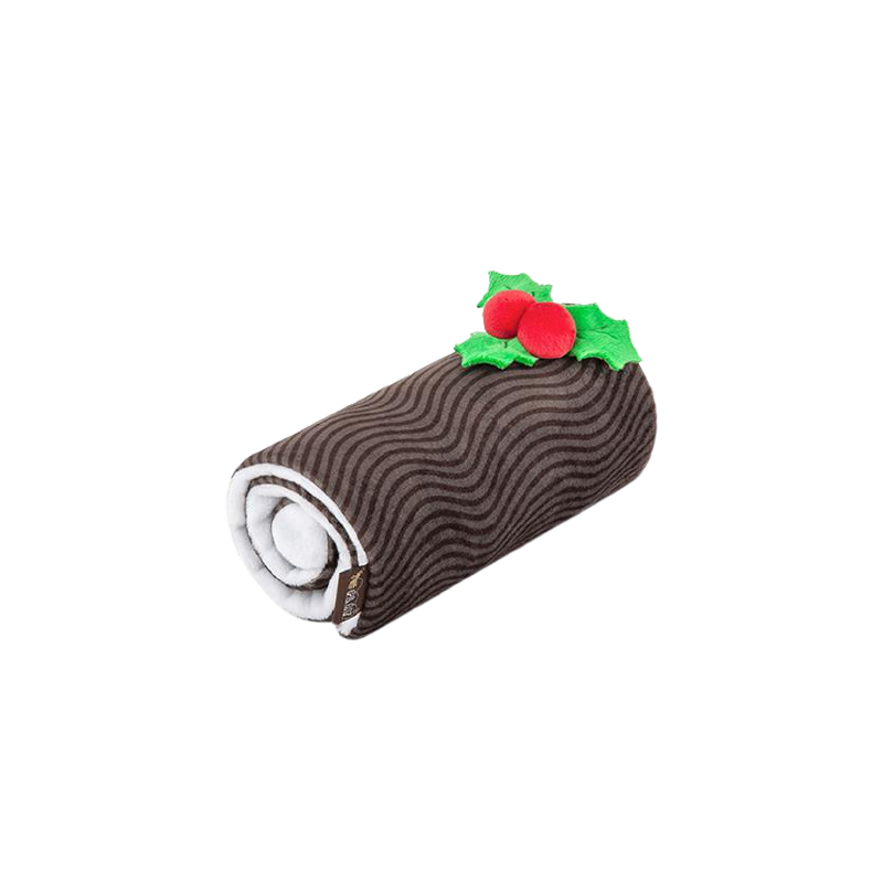 Le jouet en peluche Buche de Noël pour chien est également doté d'un bruiteur intégré qui émet un son amusant lorsque votre chien le mâche.
