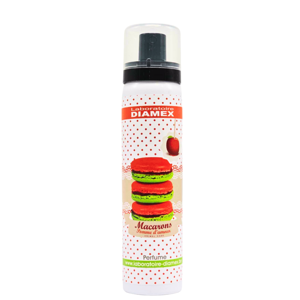 Le parfum Diamex POMME D’AMOUR de la gamme MACARONS est un parfum à la douce odeur de pomme caramélisée. Il parfume délicatement le pelage de votre chien sans l’incommoder.