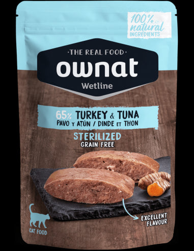 Dinde (50%), bouillon (31,9%), thon (15%), patates douces (2%), substances minérales, curcuma (0,1%).