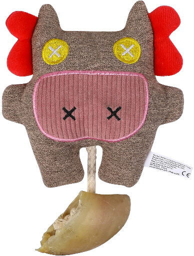 Jouet en tissu avec sabot de veau séché pour chien. Offrez à votre compagnon à quatre pattes un jouet aussi DINGO ! Ces figures fun et originales n'ont pas fini d'amuser votre chien. Associant peluche et friandise, quoi de mieux pour combler votre chien de bonheur ?