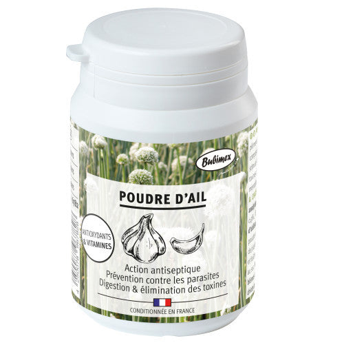 Adaptée à l'alimentation BARF, la poudre d'ail favorise le confort digestif et renforce les intestins contre les parasites comme les vers (booste les défenses naturelles).