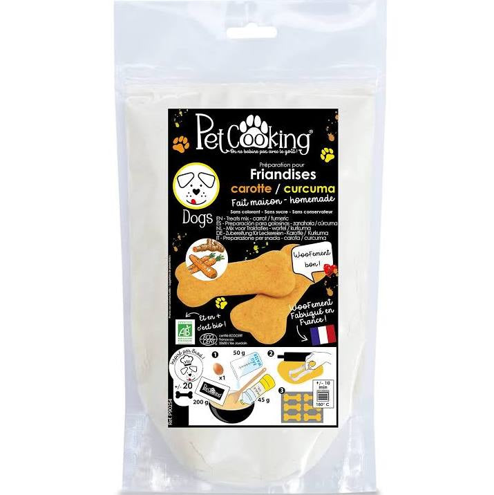 Préparation pour biscuit pour chien à la carotte et curcuma.