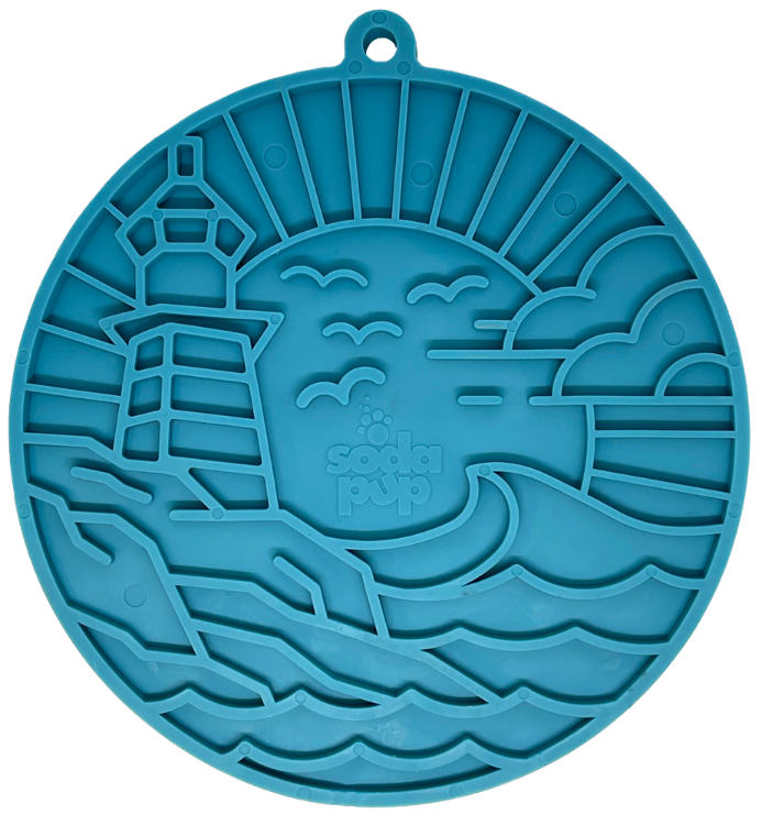 Tapis de lèche Sodapup. Forme phare, bord de mer. Matière résistante.