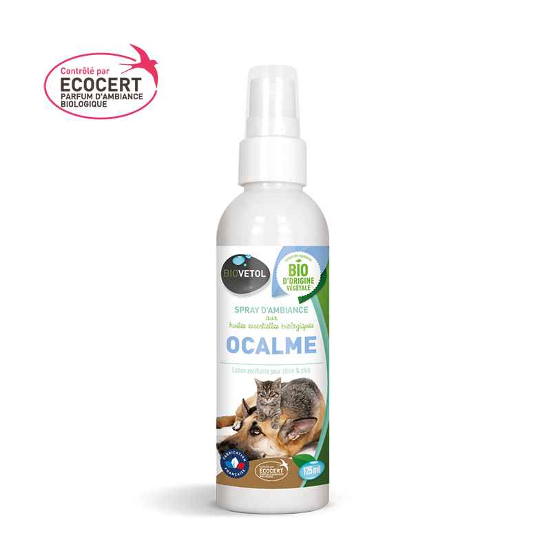 Biovetol Spray d'ambiance Ocalme Bio est conçu pour aider votre chien ou votre chat à s'apaiser et à lutter contre le stress. Formulé avec des huiles essentielles, ce spray fabriqué en France diffuse une odeur douce et agréable pour votre animal et va créer une ambiance apaisante pour lui.