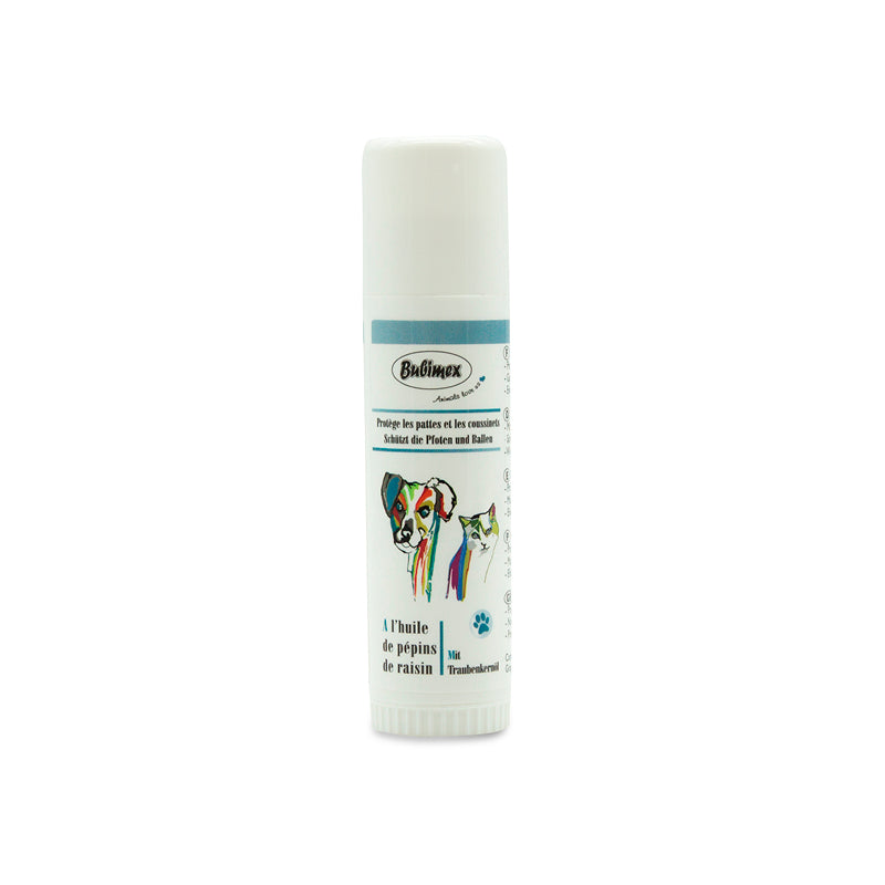 Le stick protège et nourrit les coussinets de votre animal grâce à son complexe d’huiles végétales nourrissantes comme l’huile de pépins de raisin.