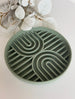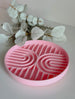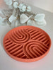 Grâce à ses fentes en forme d'arc en ciel tu peux laisser libre cours à ton imagination pour réaliser des tapis de léchage fun et coloré !