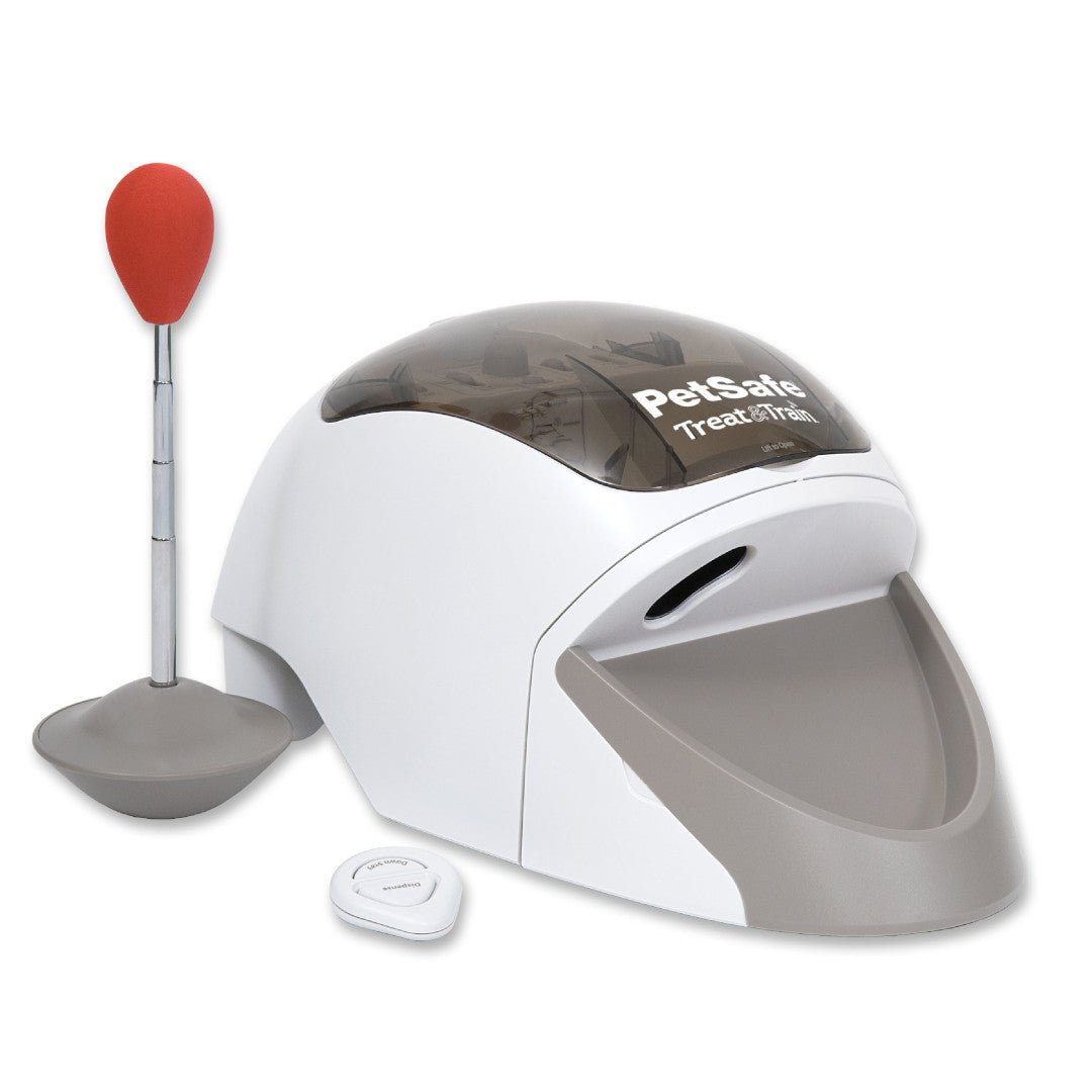 Le dispositif de dressage pour chien par la récompense à distance Treat & Train™ est un système de récompense télécommandé qui utilise le renforcement positif pour que les chiens en cours de dressage se comportent correctement à la maison. Le dispositif de dressage électronique aide à enseigner un comportement calme dans des situations distrayantes, par exemple quand des visiteurs sonnent à la porte ou à l’heure des repas en famille. Le dispositif Treat & Train™ enseigne aux chiens à se concentrer sur vous, en utilisant des jeux interactifs amusants, qui fournissent exercice et stimulation mentale. Il vous permet de montrer à votre chien comment effectuer presque n’importe quel comportement, des compétences quotidiennes (par exemple, apprentissage de la propreté) aux compétences spécialisées (par exemple agilité, obéissance, service et travail militaire), à distance.