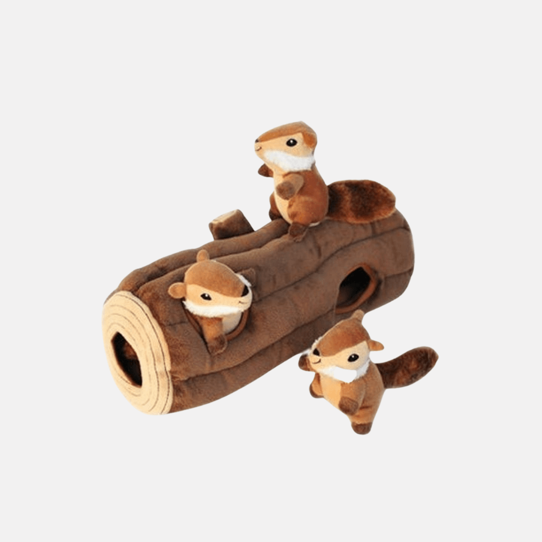 Le tronc et ses 3 écureuils de Zippy Paws est un véritable jouet d'occupation en peluche pour chien. Montrez les petits jouets à votre Poilu en pressant sur le squeaker puis cachez les à l'intérieur ! Le couinement permet de stimuler votre chien pendant le jeu.